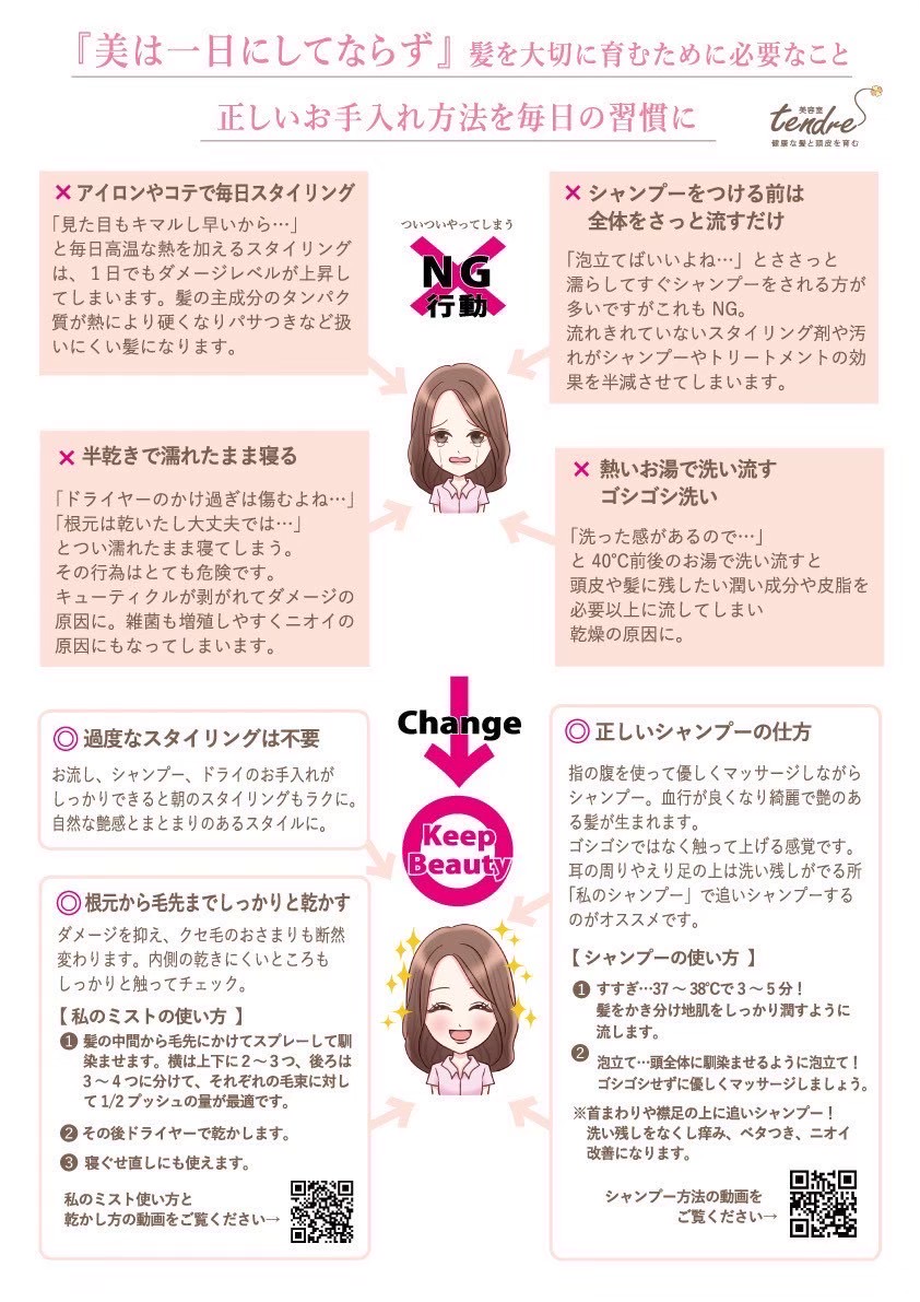 また、御来店前からご自宅でできる、動画やイラストでヘアケアの仕方もご紹介させていただいています。そちらも是非ご参照くださいね。