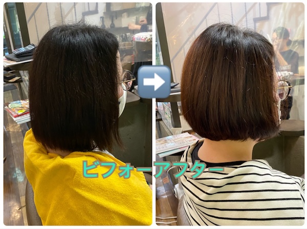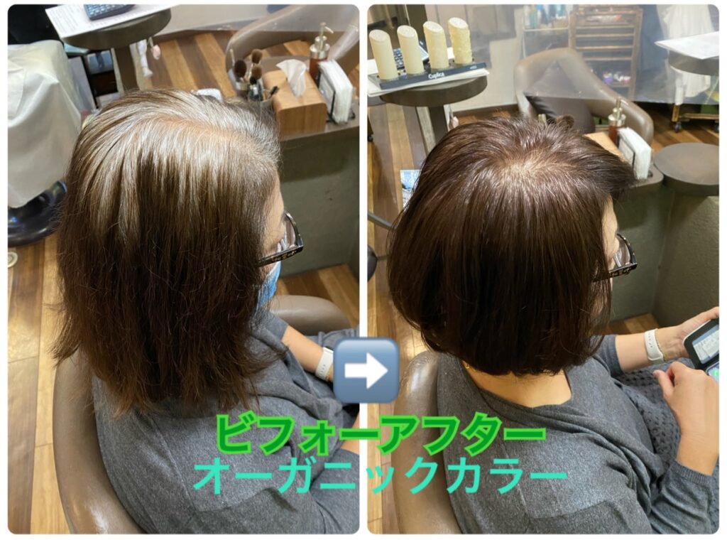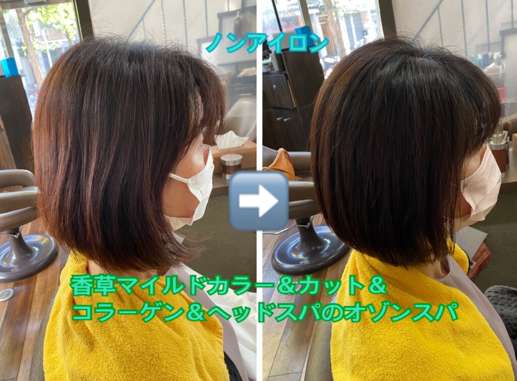 画像は原因がなくなるよう、ノンジアミンカラーの力で髪を元気にさせた事例です。