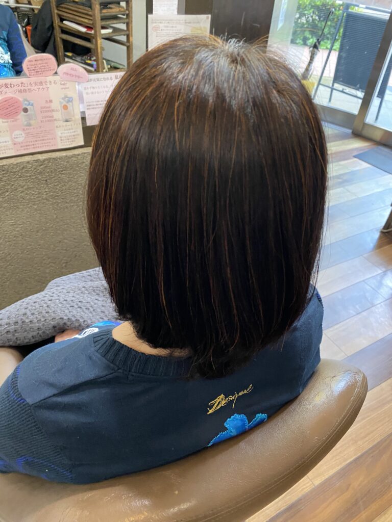 こちらのお客様は、ノンジアミンカラーと艶髪トリートメントを選択。