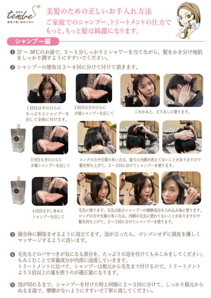 ちなみに、美容室tendreでは、次のホームケアをお客様にお伝えしています。