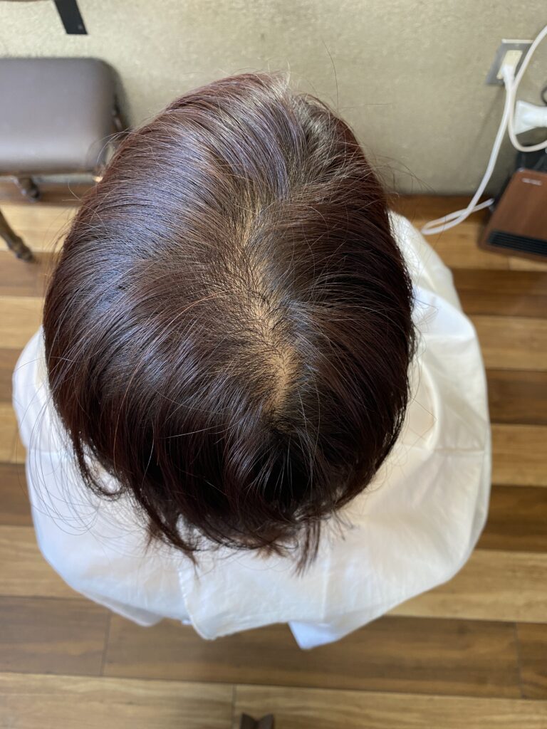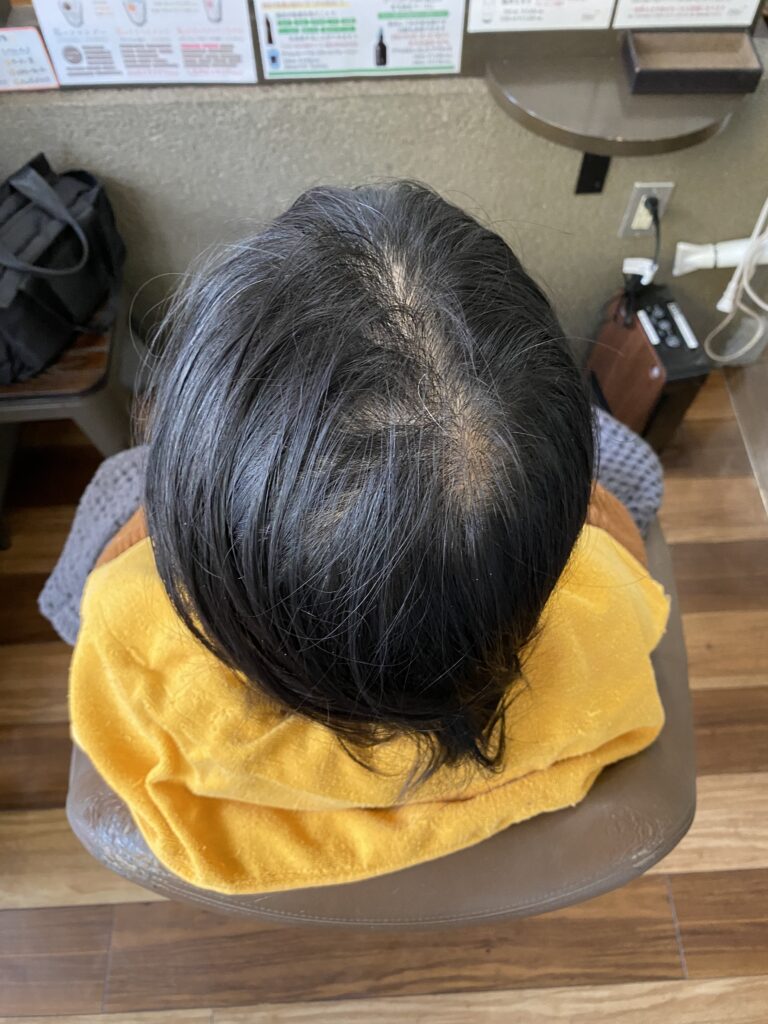 こちらのお客様は、初回ご来店時に「つむじの分かれ目」「薄毛」「頭皮のかゆみ」についてご相談くださいました。