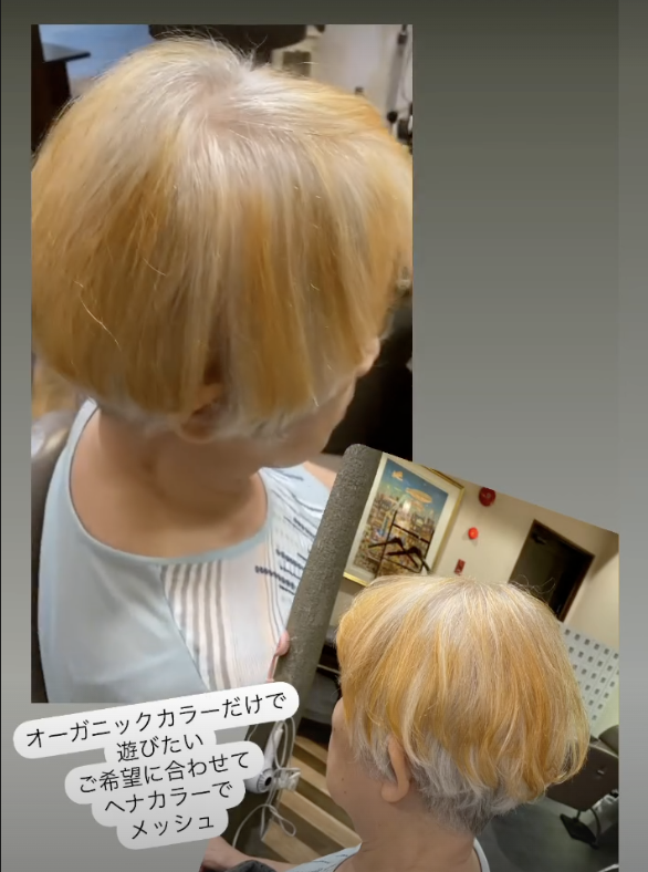 美容室tendreではブリーチを一切使用せず、オーガニックカラーのみで徐々に明るくしていく白髪ぼかし方法を取り入れています。