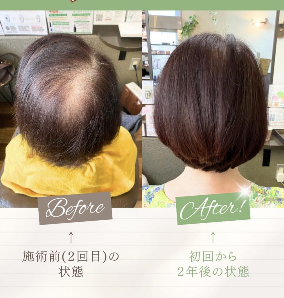 3ヵ月・半年・1年と、継続することで「トップが自然に立ち上がる」「分け目が気にならない」といった変化を感じる方が多いです。