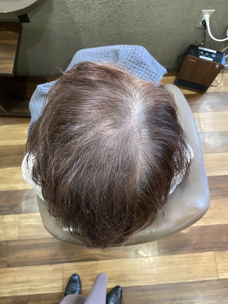 こちらのお客様は、トップや分け目が目立つペタンコ髪でお悩みでした。
